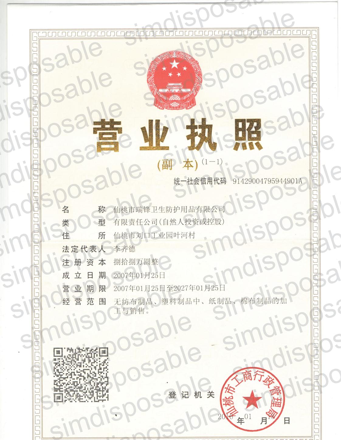 仙桃市瑞鋒衛生防護用品有限公司(Sword Xiantao Disposable Protective Products Factory)位于“江漢明珠”----湖北省仙桃市劉口工業園,西領古城荊州,滬蓉高速公路、318國道和滬蓉鐵路橫貫全境,到武漢港100公里,交通便利,地理位置優越。